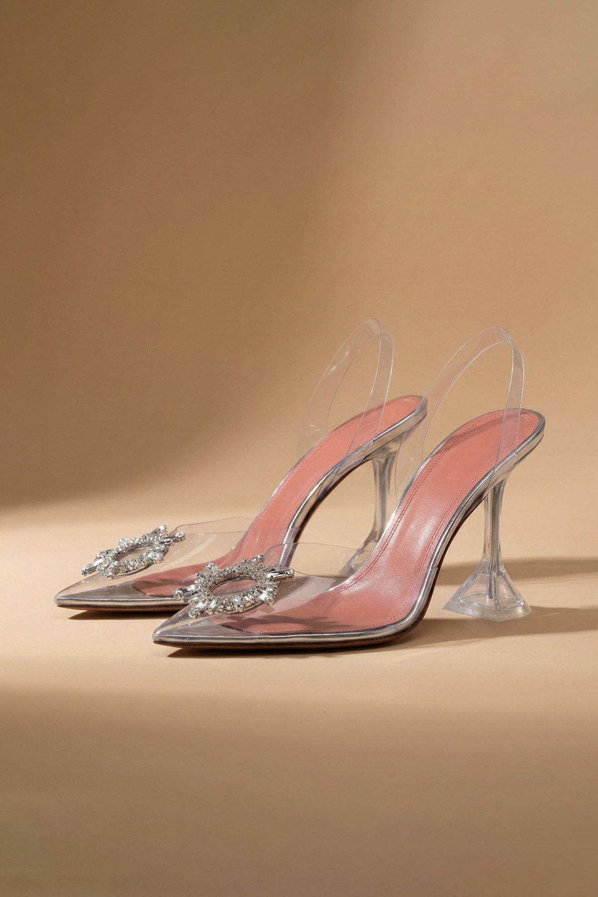 Dazzle like Cinderella in these Sweet Pea Crystal Slingback shoes. Sophisticated style and on trend clear fashion shoe is the hot new look guaranteed to make you the belle of the ball. Cinderella would be envious. Available in various heel heights.Â