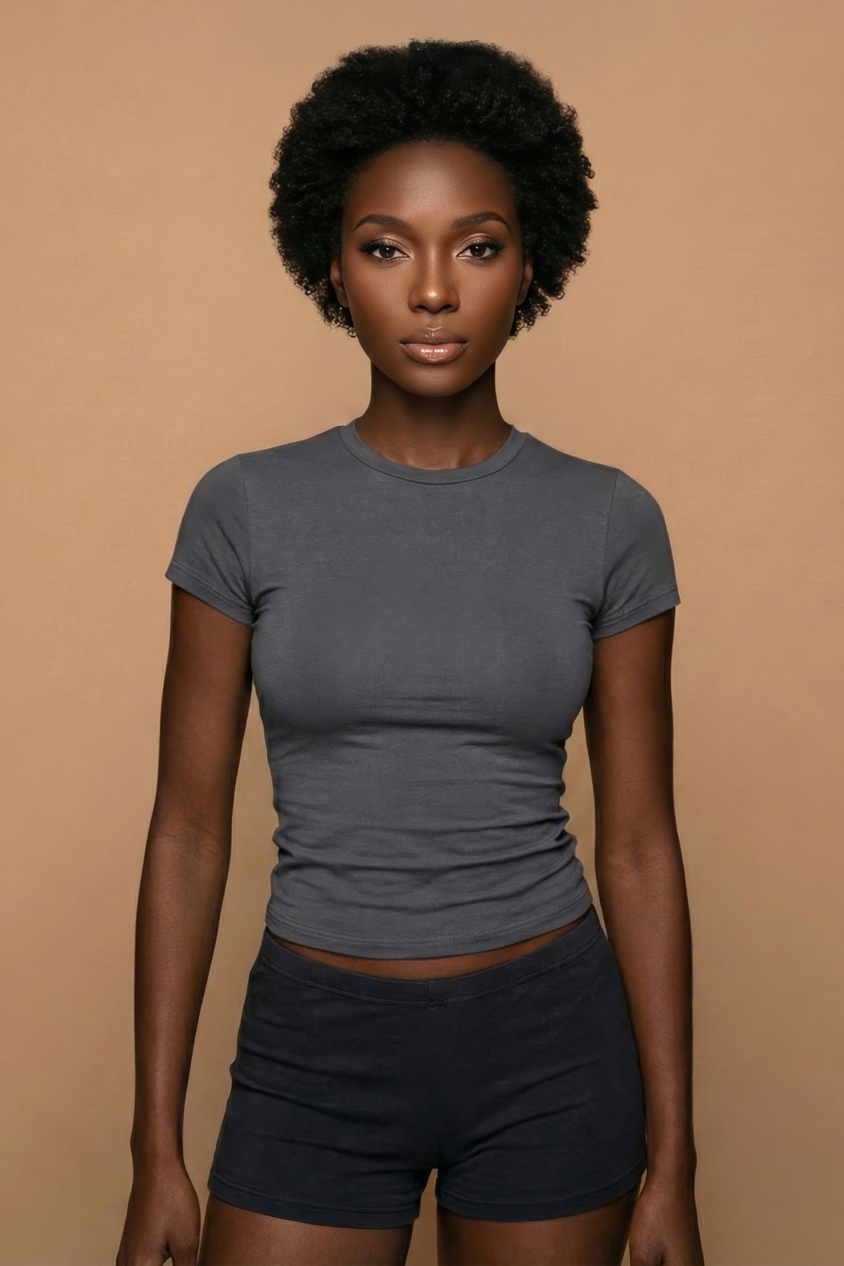 Style it tucked into faux leather shorts, layered under blazers and jackets, or worn solo with denim for an elevated everyday look. This tee is the foundation piece you will build outfits around again and again.