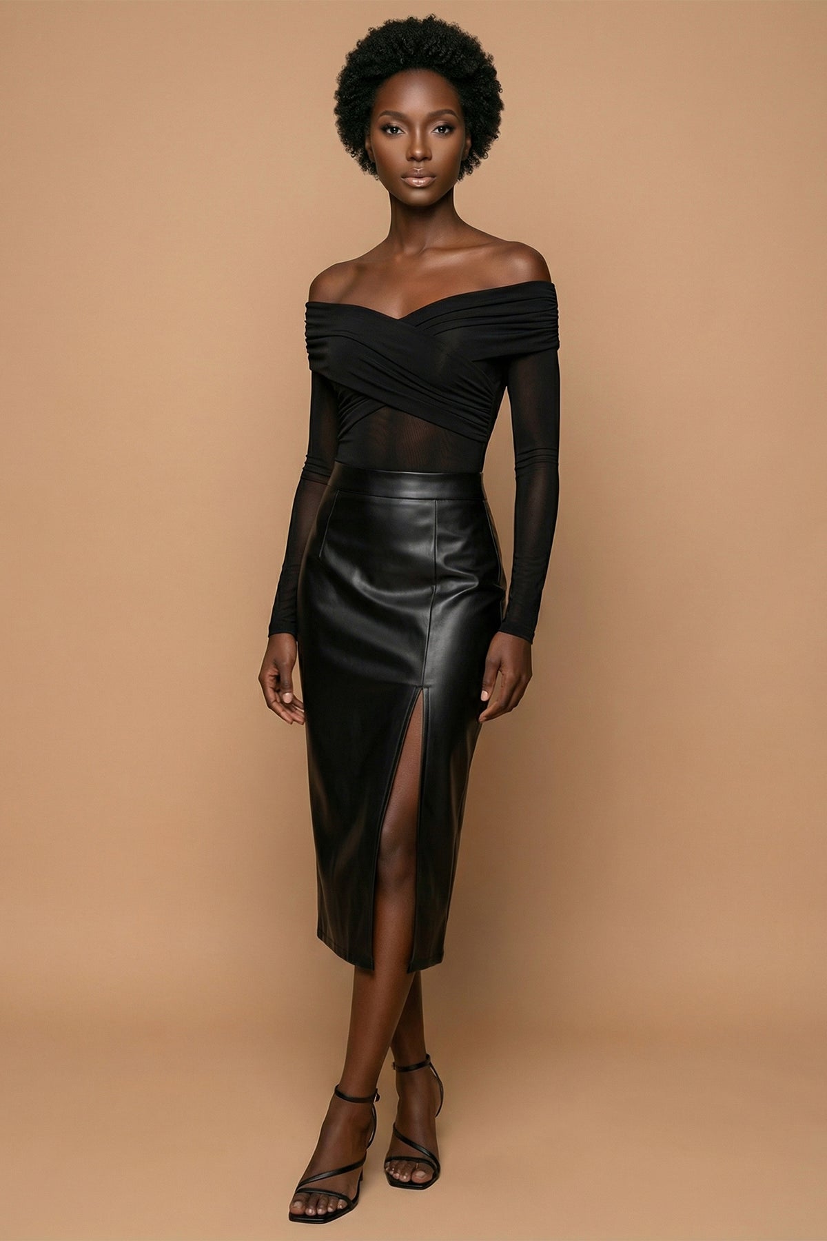 Winter Women Sexy Midi Leather Skirts Solid Black High Waist Office Pencil Slit Skirt For Women