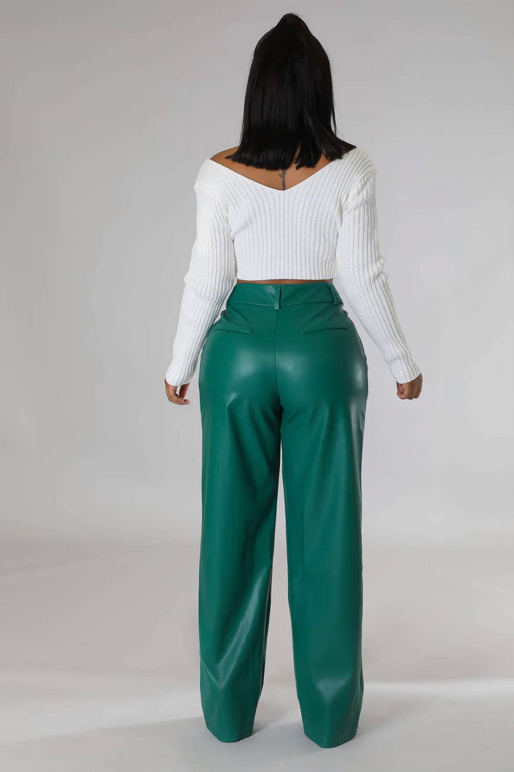 Luxe Relaxed Fit Green Vegan Leather Trousers