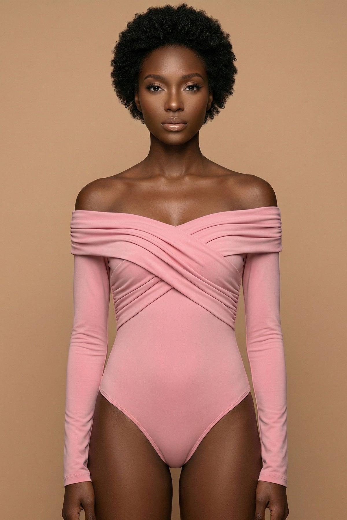This off-shoulder bodysuit combines elegance with modern edge, perfect for any occasion. Designed to flatter your silhouette, it features pleated details, long sleeves, and a slim fit for effortless style.