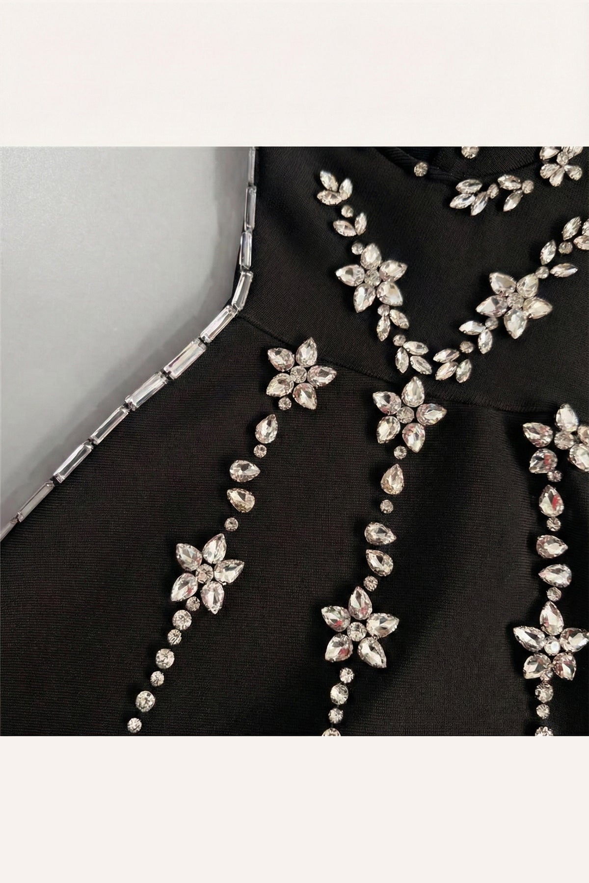 Pair with clear heels or sleek black accessories for a polished, editorial finish. Keep jewelry minimal to let the crystal embellishments shine. Perfect for cocktail events, evening celebrations, holiday parties, and upscale dinners.