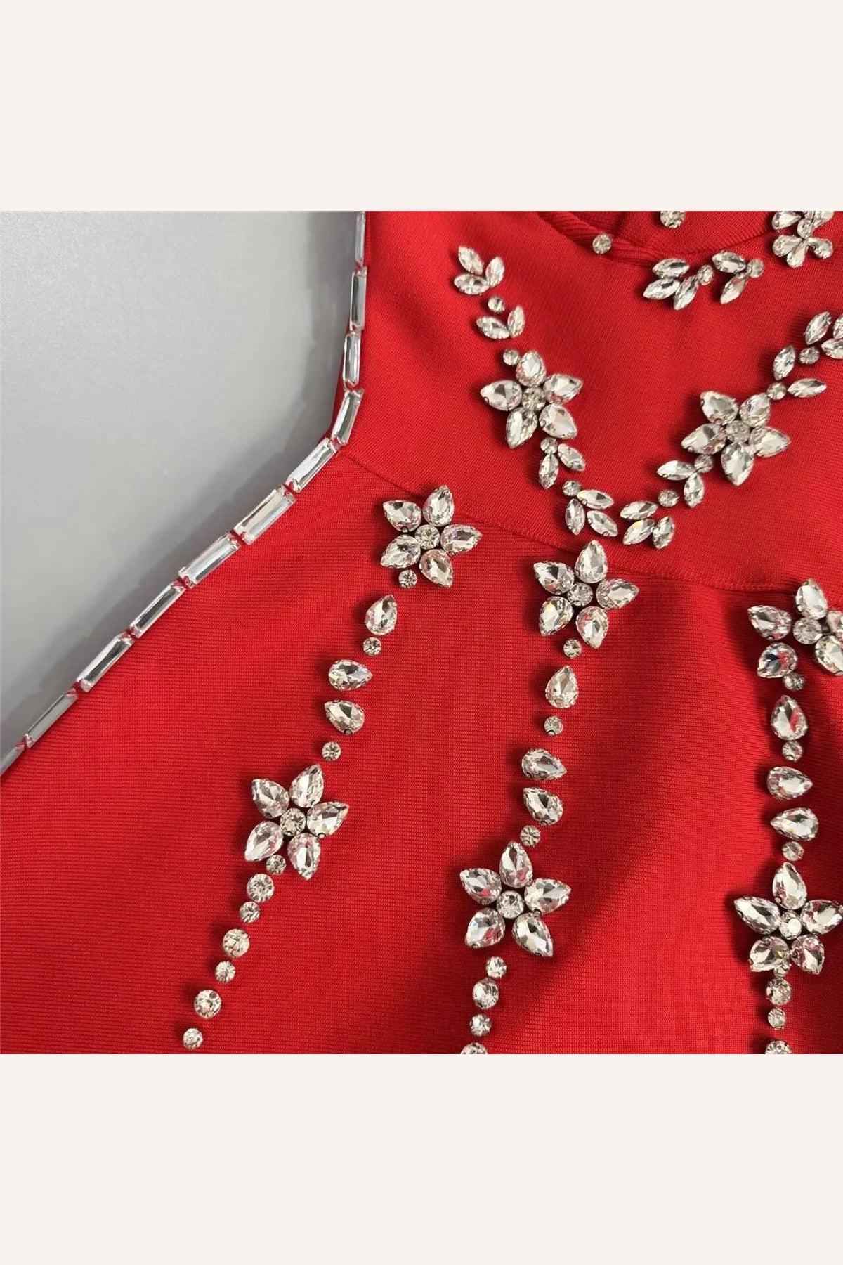 Material: Heavyweight firm stretch fabric with crystal embellishments