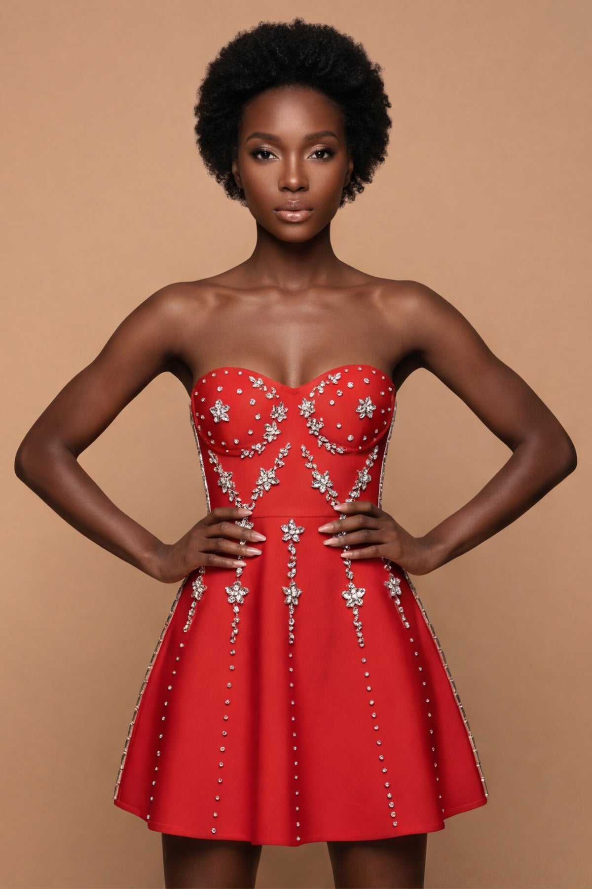 The Rianna | Red Crystal-Embellished Strapless Mini Dress