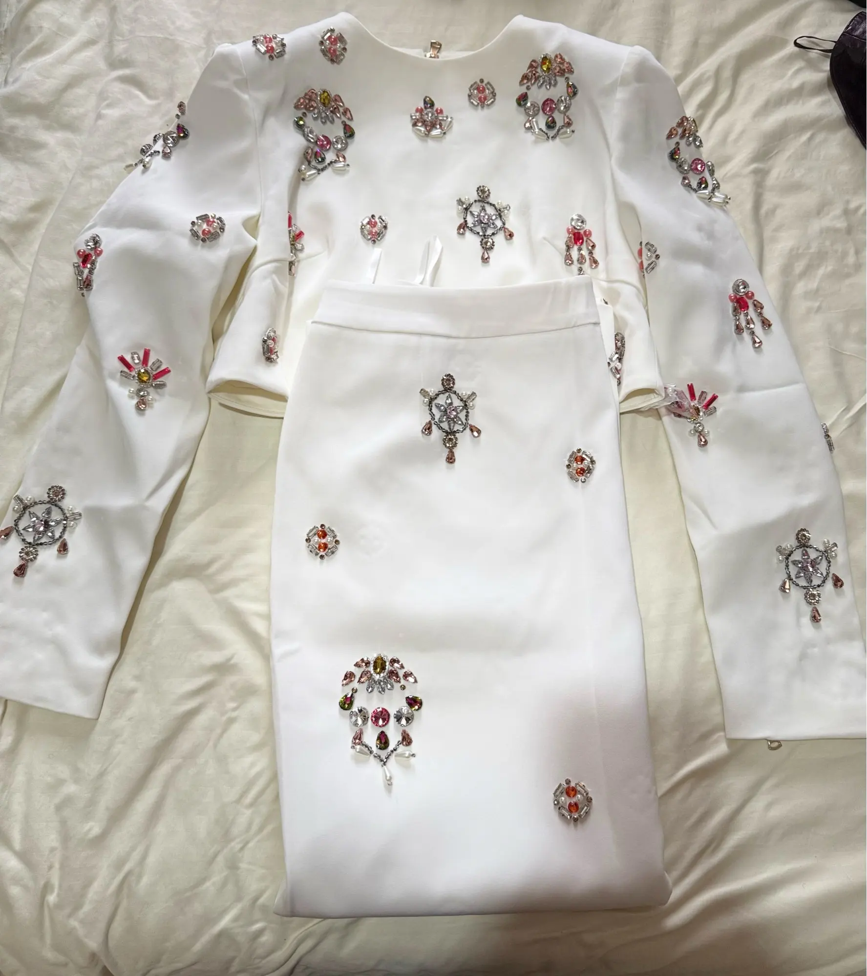 Victoria White Crystal Embellished 2 Piece Maxi Skirt Set