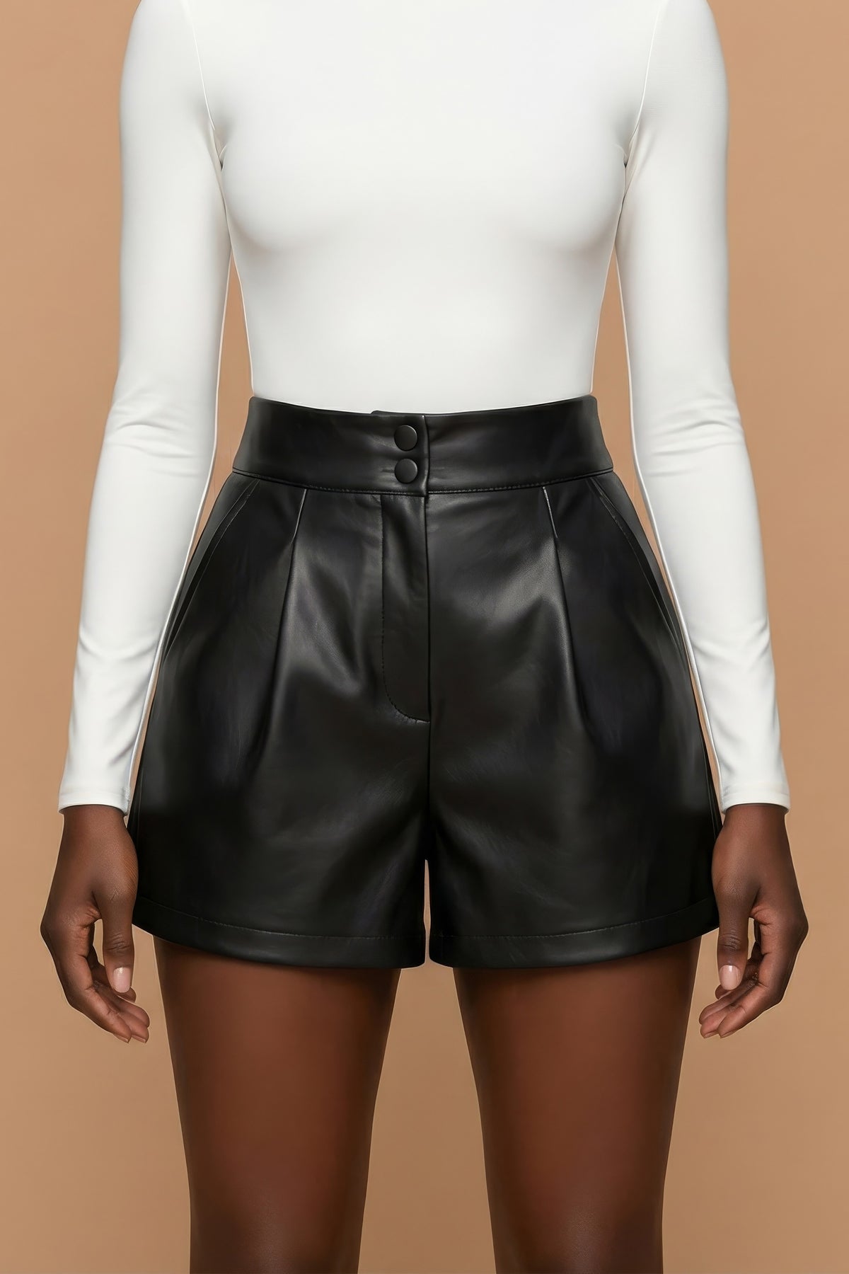 Crafted from smooth PU faux leather with a rich, polished finish, these shorts balance structure and ease beautifully. The front features tailored pleat detailing that mimics classic trouser construction, giving you that elevated, pants like look seen in the product images. In the back, a concealed elastic waistband adds comfort and flexibility without disrupting the clean silhouette. The result is a short that looks tailored from the front and feels forgiving from the back.